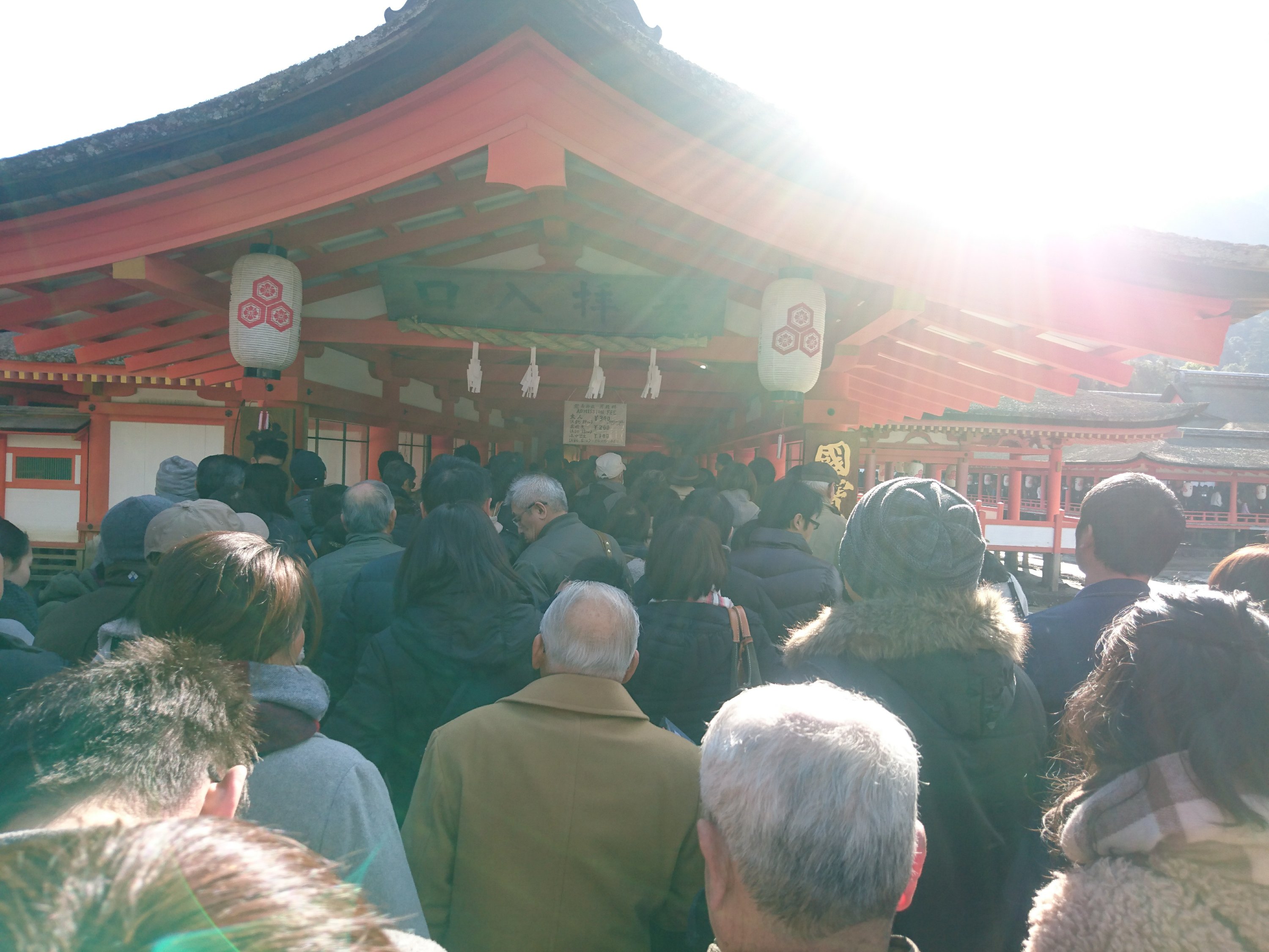 宮島へお参りに厳島神社参拝しました。多くの人です⤵️