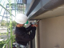 コウモリの写真 侵入口の穴塞ぎ作業中