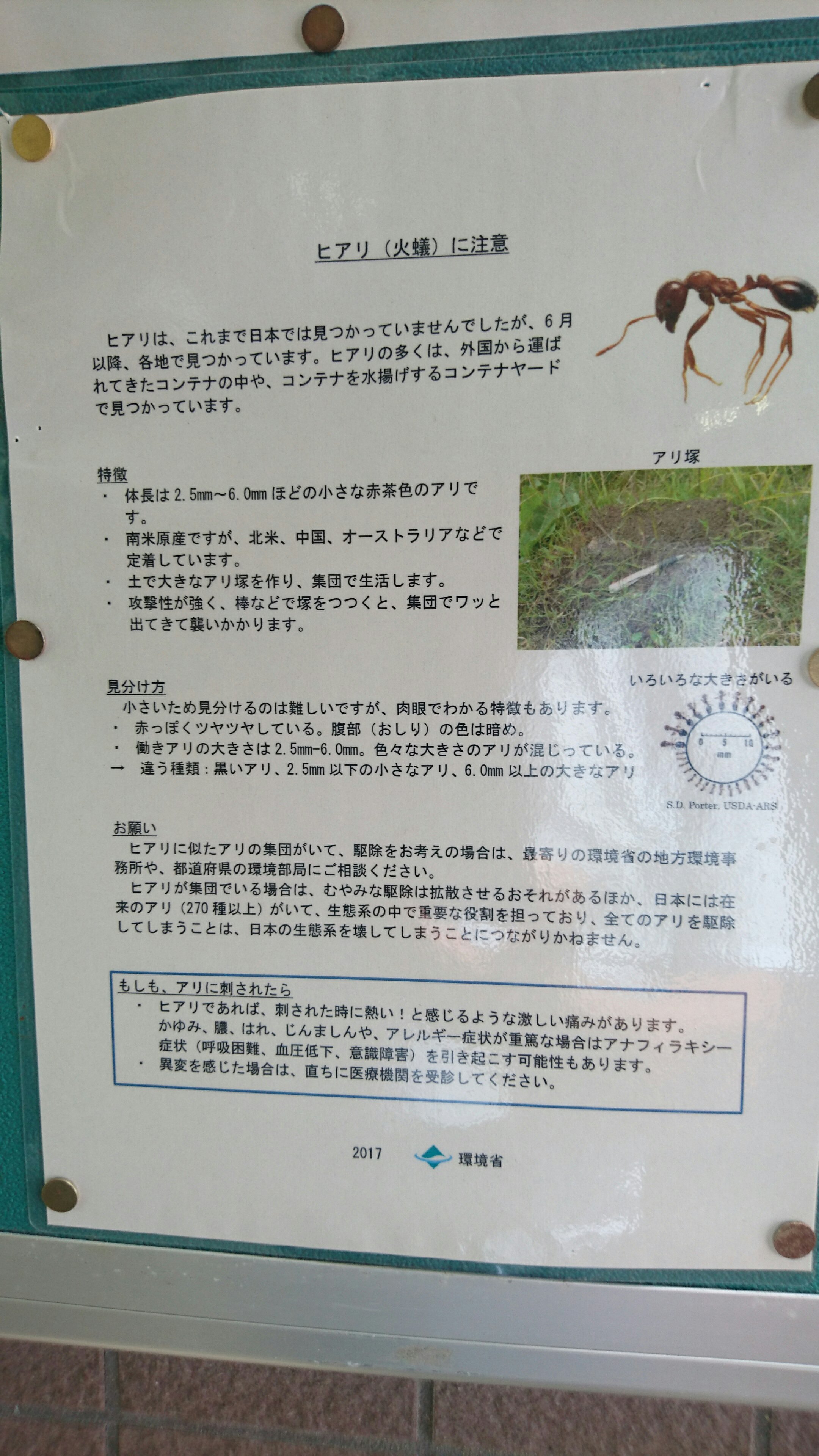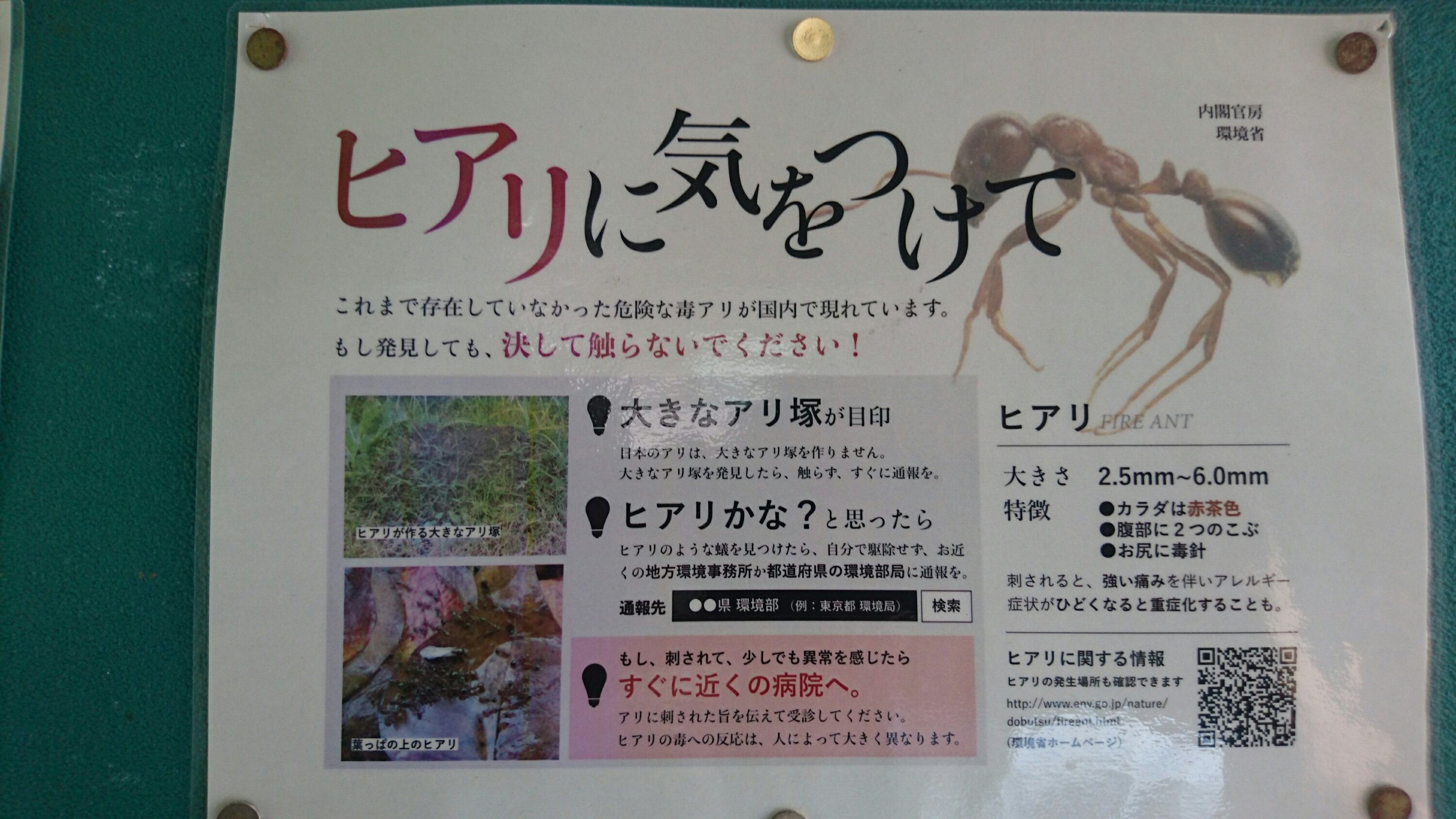 鹿児島へ向かう途中、サービスエリアで休憩していると、ヒアリの情報が掲示していました!