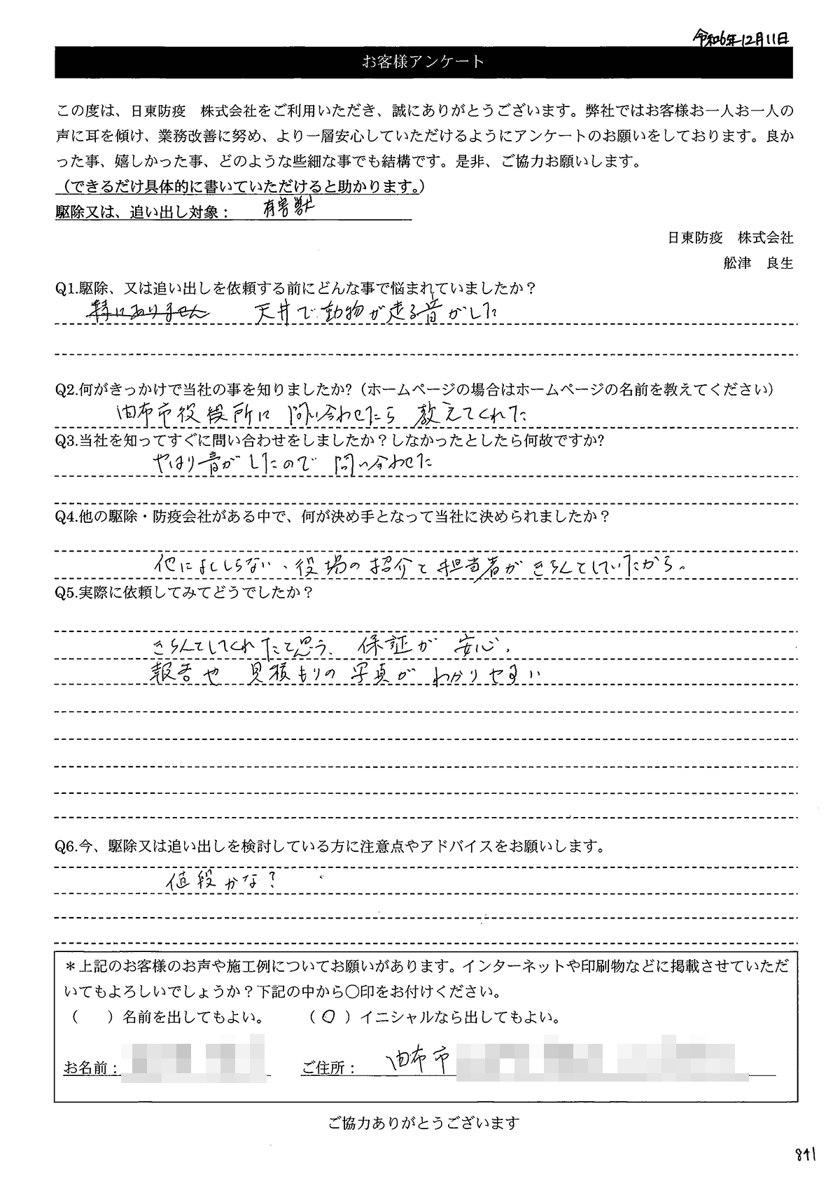 Q4.他の駆除防疫会社がある中で、何が決め手となって当社に決められましたか?