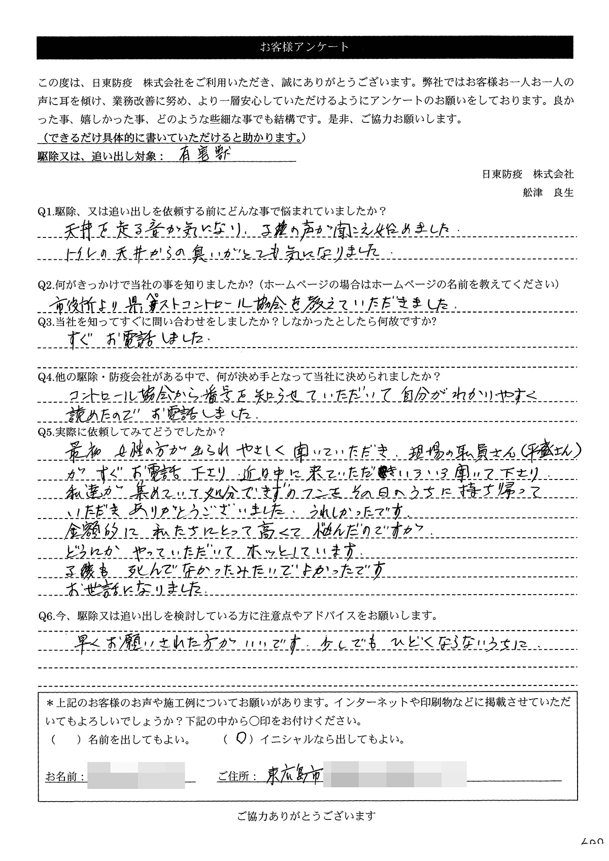 Q6.今、駆除又は追い出しを検討している方に注意点やアドバイスをお願いします。