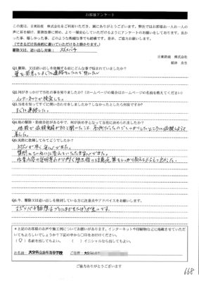 | Q6.今、駆除又は追い出しを検討している方に注意点やアドバイスをお願いします。 | |