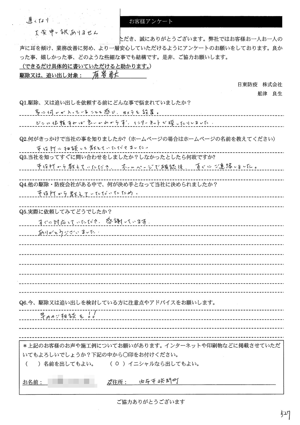 | Q6.今、駆除又は追い出しを検討している方に注意点やアドバイスをお願いします。 | |