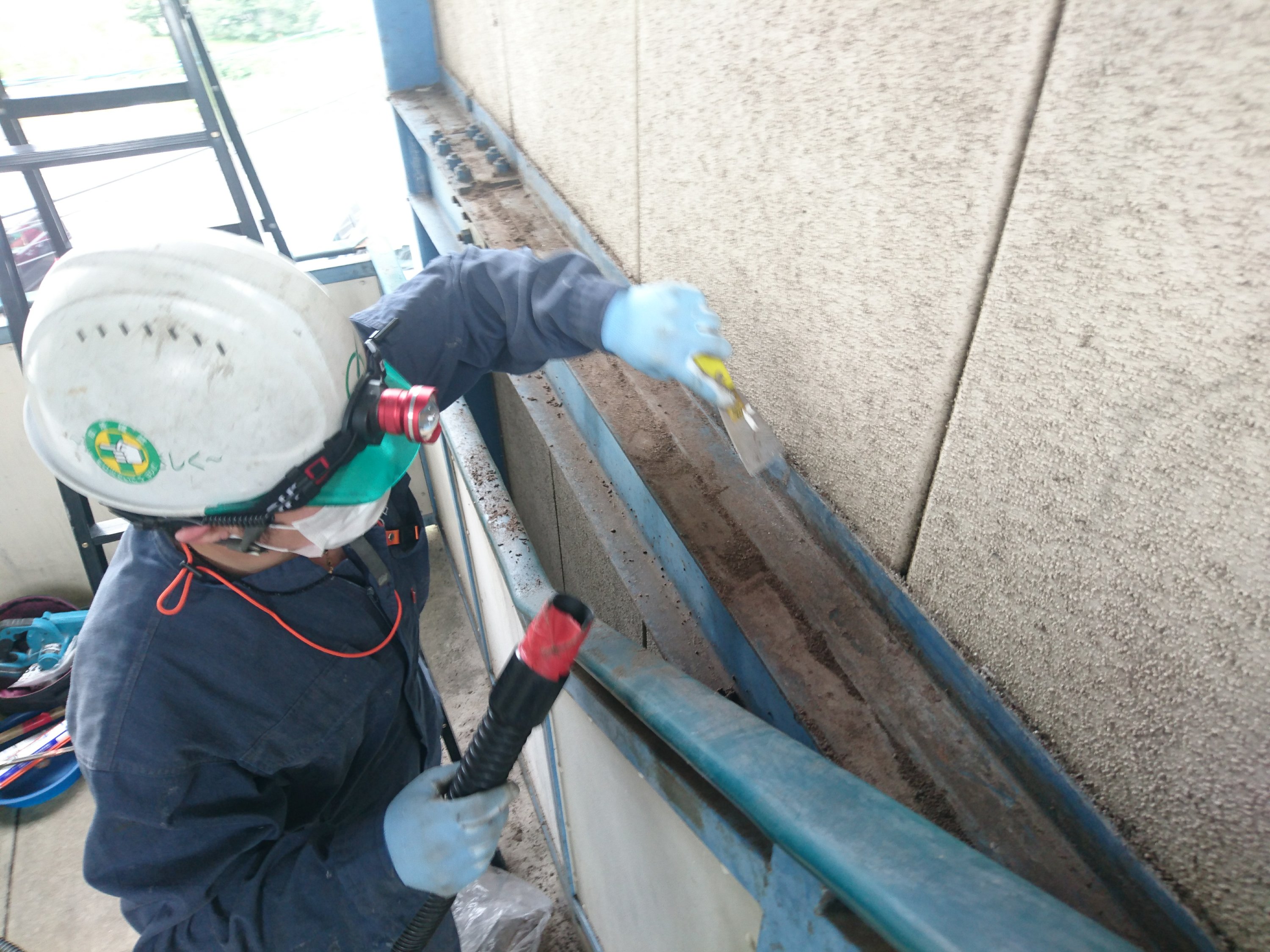 入る所は鉄鋼の隙間です。中にも糞が入っているため、エアーで隙間から出してから閉塞です。