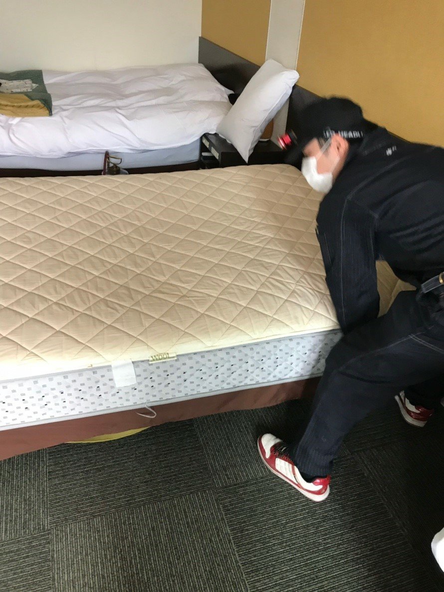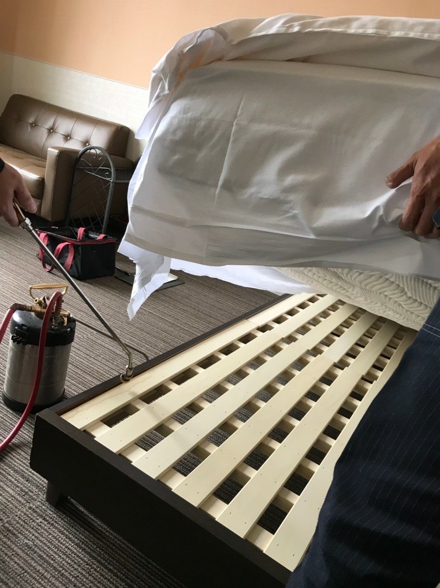 弊社では、バックパッカー用の素泊まり旅館やホテルなどを定期的に調査を行い、早目に対処出来るように考えています。トコジラミは結構手間の掛かる害虫です。ベッドをひっくり返して確認したり、細かな場所までチェックします。