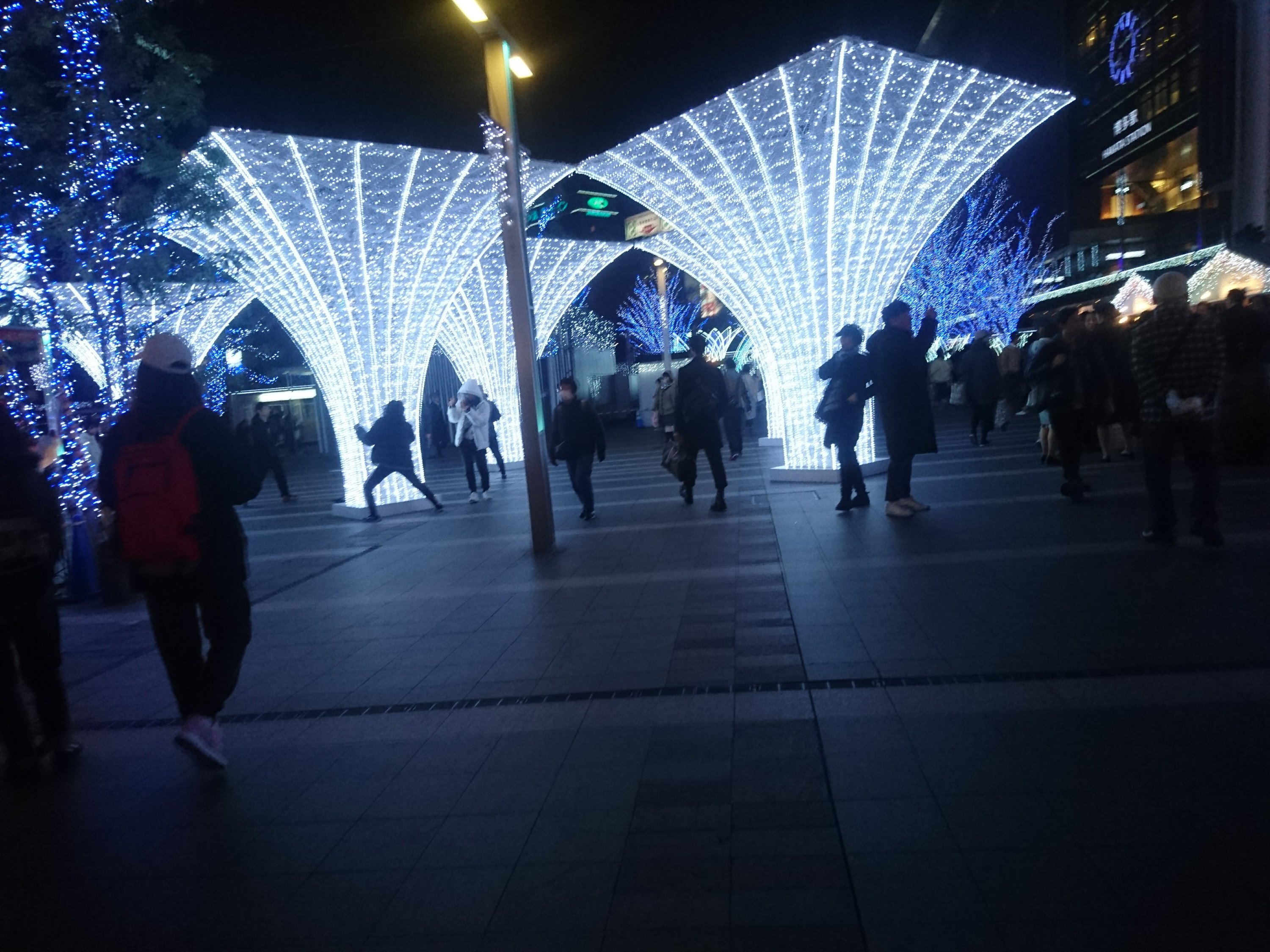 忘年会とクリスマスシーズンで博多の町は人が多く、にぎやかな雰囲気です。やはり、広島より人が多く感じます。