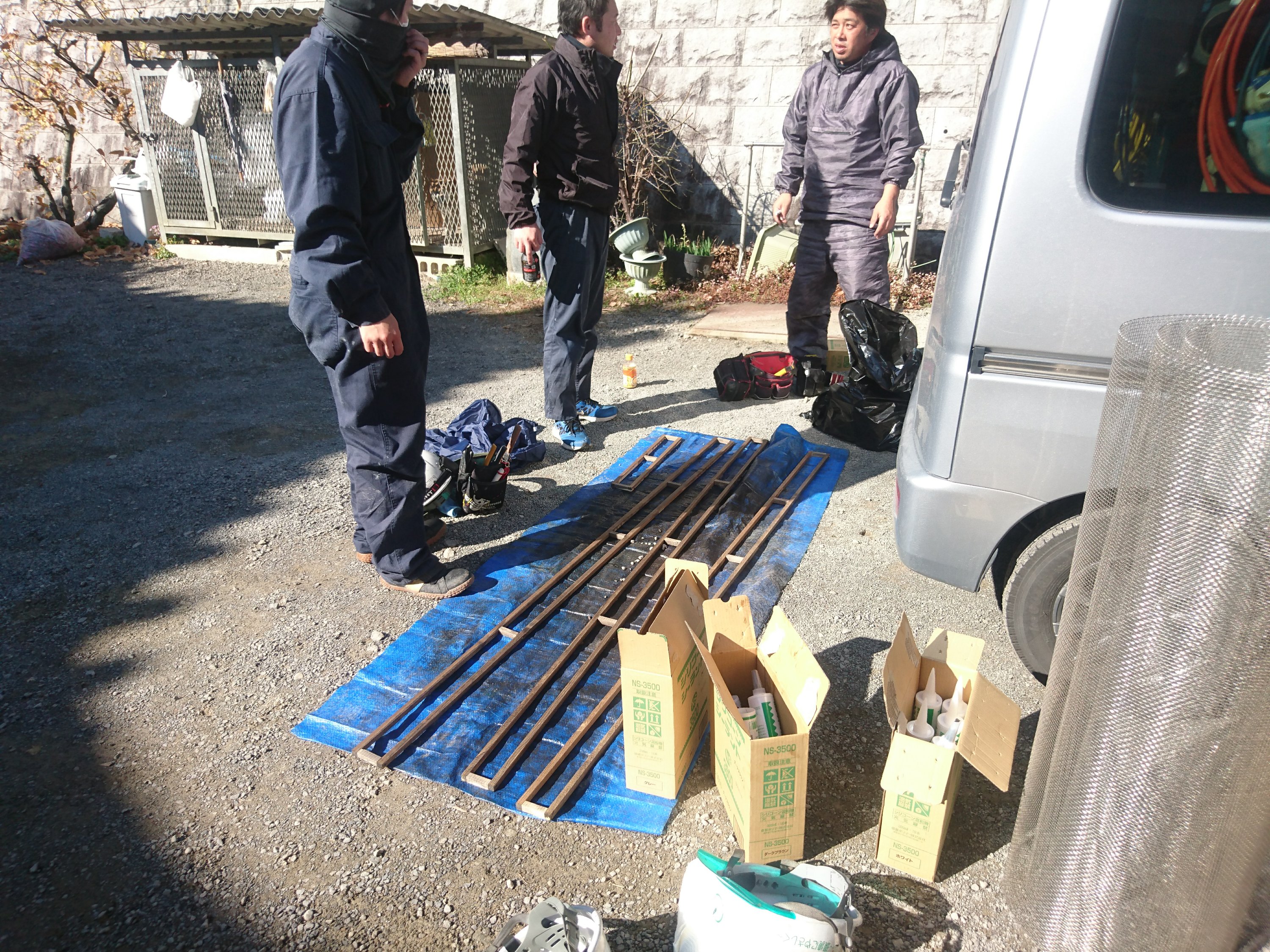 工事1日目、工事の方は順調で、今回の第1工程はいい感じに終われそうです。思ったより段取りが良く皆で協力して頑張ってます。