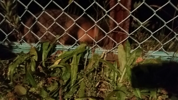 何かが近づいてきた!タヌキでーす!人間慣れしたやつですね。エサをやるとどんどん、近づいてきます。ここは、上津江村のバンガローでバーベキュー中にあった出来事でした。