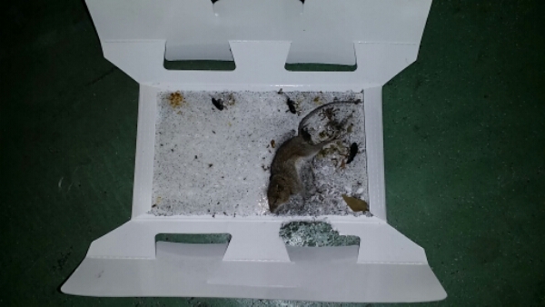 今日は、加藤くんと現場に同行です。 毎月、異常が見られない場所でもこの時期はネズミちゃんの動きがあります。やはり、入口付近で捕獲されています。