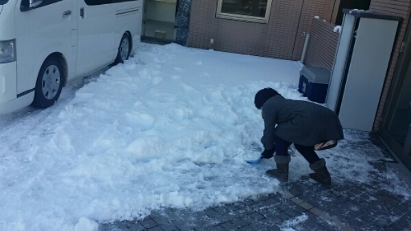 営業所の周りはこんな感じです。市内から10キロかな?こんなに違います。事務員のヒデミちゃんは雪カキ中です。