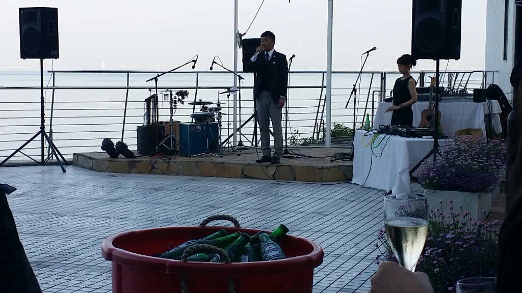 日曜日は、宇佐市でハト対策の現場を段取りして、夕方から別府湾ロイヤルホテルで同級生のお店、バートランブルーの15周年記念パーティーにお呼ばれされました。彼はソムリエの勉強して、店を開業して手広くビジネスをがんばっています。別府湾ロイヤルホテルは素晴らしくロケーションがよかったです。別府市長の長野やすひろ市長など豪華な方々が沢山お祝いに駆けつけていました。