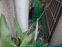 とにかく境界線の狭い場所でした。あやしい場所があったので追及していくと・・・やはり発見!土を掘って侵入しています。 ちょっと人間の体が入れないところなので、よく考えてご提案します。