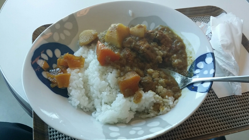 お昼はキーマンカレーライスを船内で食べました。お味は……うーん…まぁまぁかな?