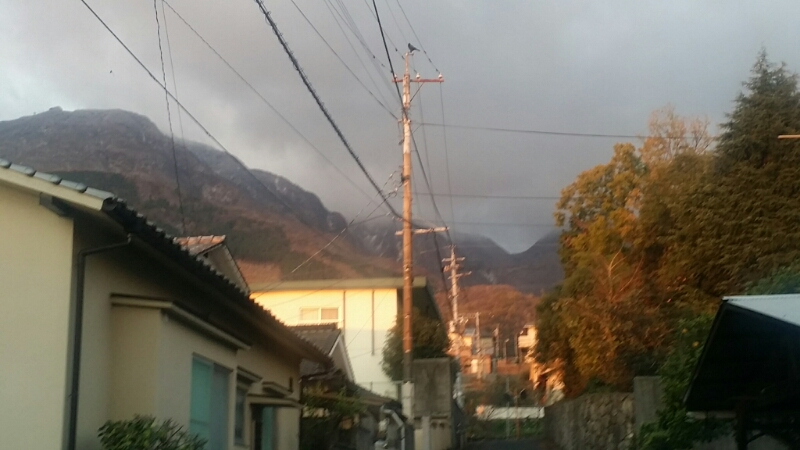 おはようございます!ようやく12月らしく寒さがやって来ましたねぇ! 今日は別府鶴見山はほんのり薄く白い帽子を被っています?