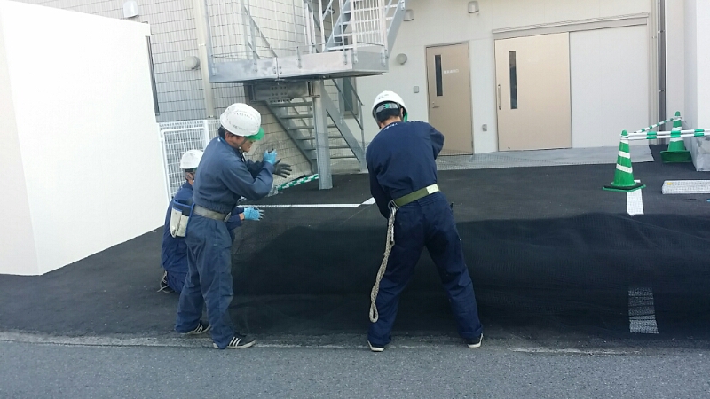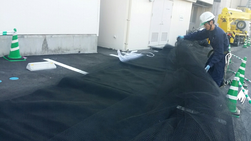 おはようございます!昨日は地上から20Mの高さで防鳥ネット設置作業!