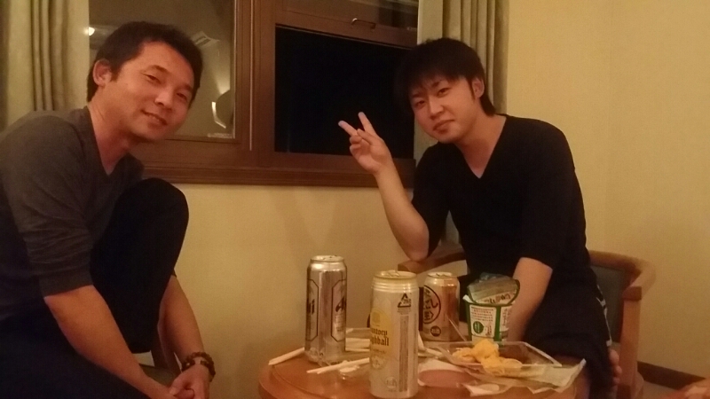 着いたのは夜中の12時でした!宿の周りには何もない静な場所です! コンビニで買い物してのんでいまーす!