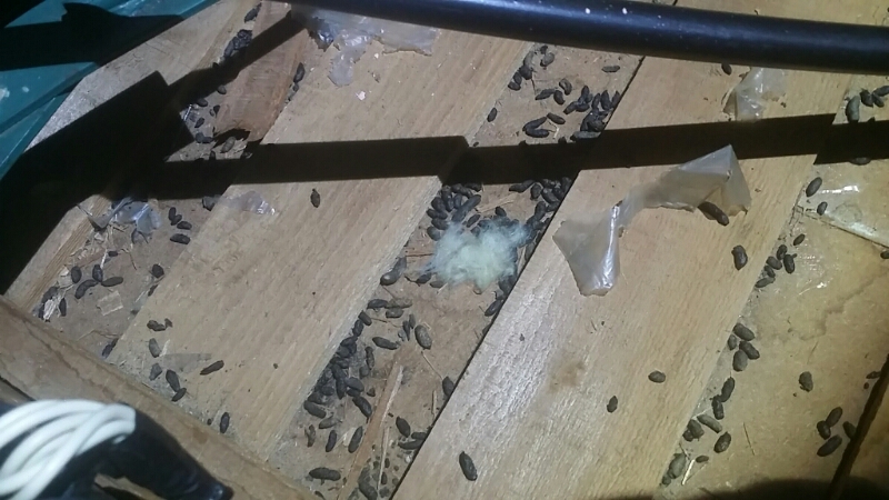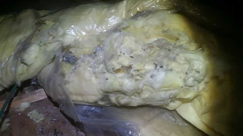 やはり、断熱材を動かすと天井板の上は糞まみれでした。