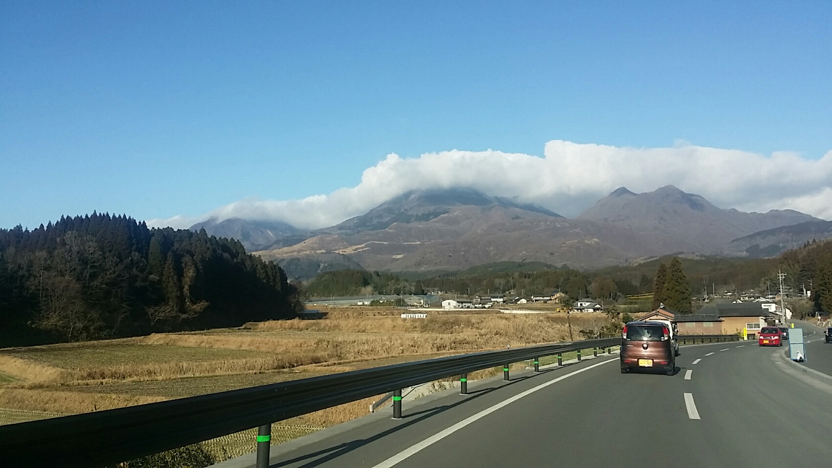 天気はいい感じですが、朝は気温が低く肌寒い状況の中、竹田市久住町を通って行くと、山はほんのりうっすら薄い雪帽子を被っています。