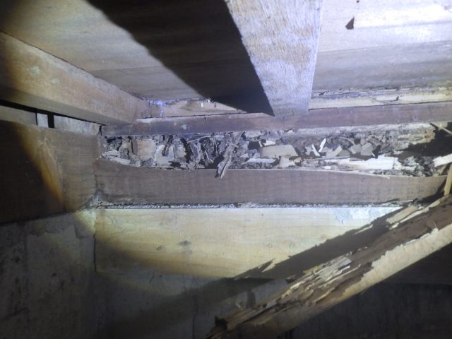 ヤマトシロアリの侵入です。天井裏には羽アリの死骸や羽が沢山落ちています。