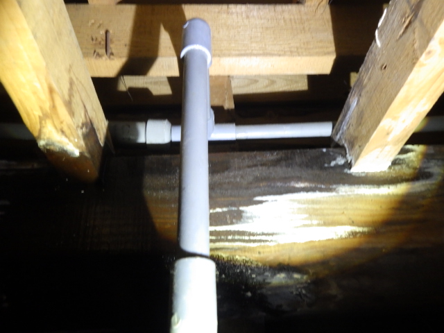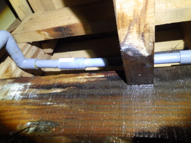 先週末に行った現場で、天井に染みがあるので天井を開口すると、上がベランダなので外からの漏れではないかなぁ?と思いきや、天井裏の水道パイプにほんの少しひび割れで水が漏れていました。ちょうど2階のトイレの下になります。