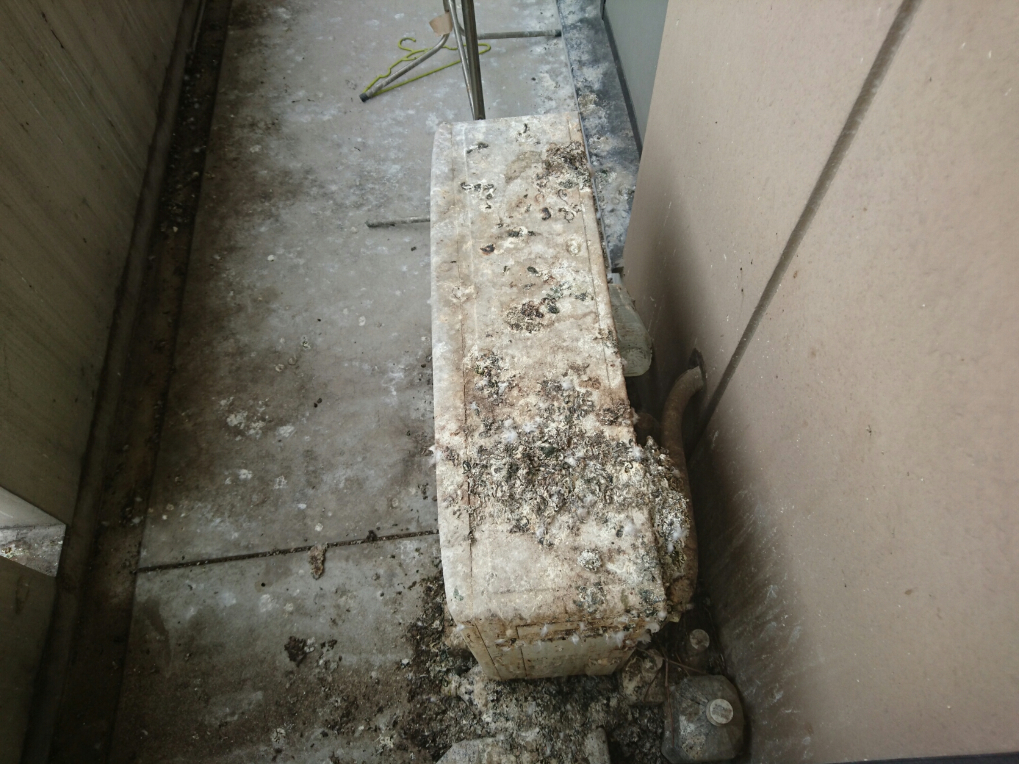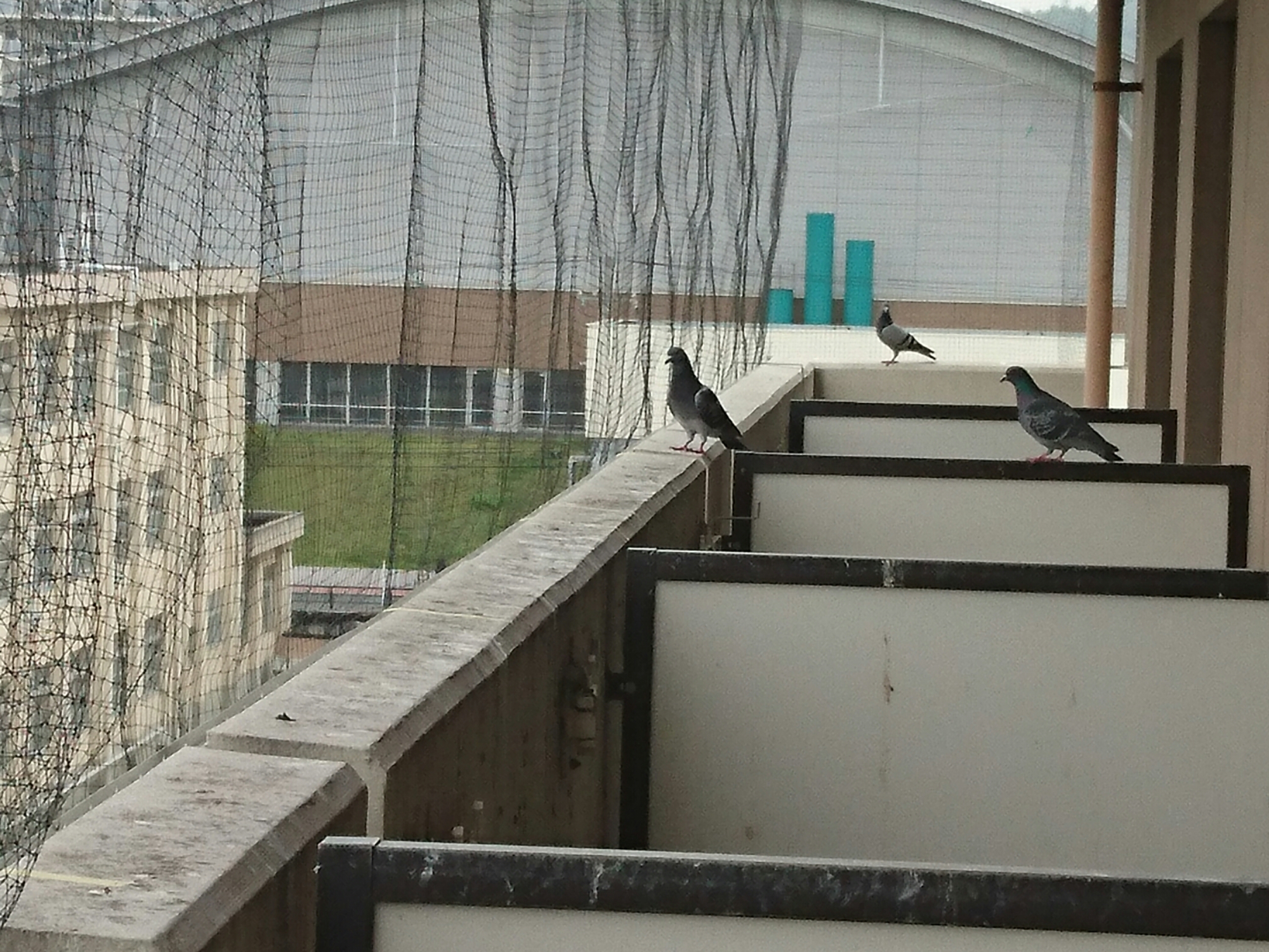 かなり被害が大きい現場でネットを張っている中でも次々とハトが入って来るので、追い出しながらの作業です。