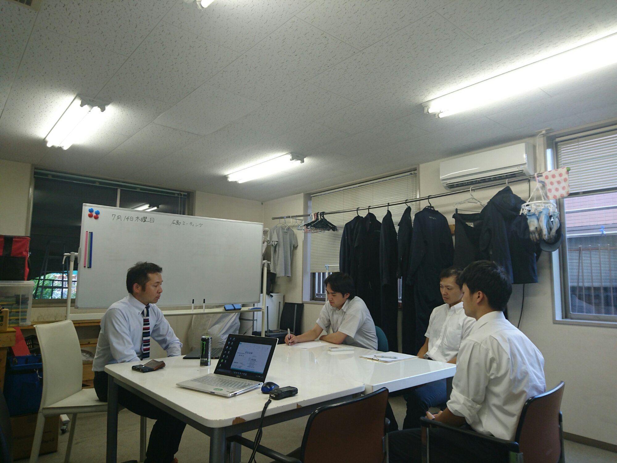 広島営業所のスタッフ平盛くんと一緒に福岡の現場を回って広島へ来ました!夕方から久しぶりに参加、営業所のミーティングです。