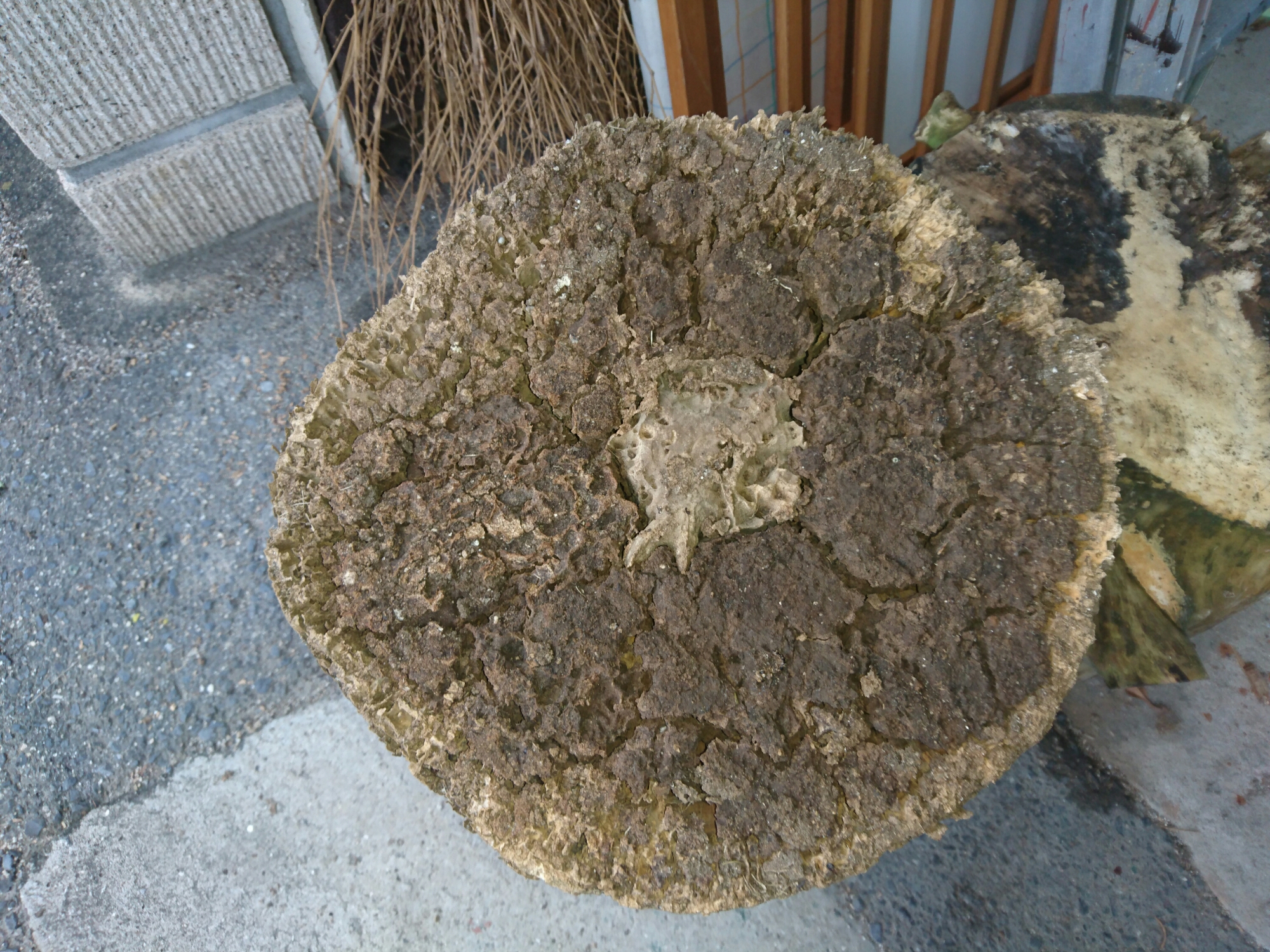 昨日はシロアリの巣を発見!切り株の椅子をお庭に置いているのを動かして見ると…!