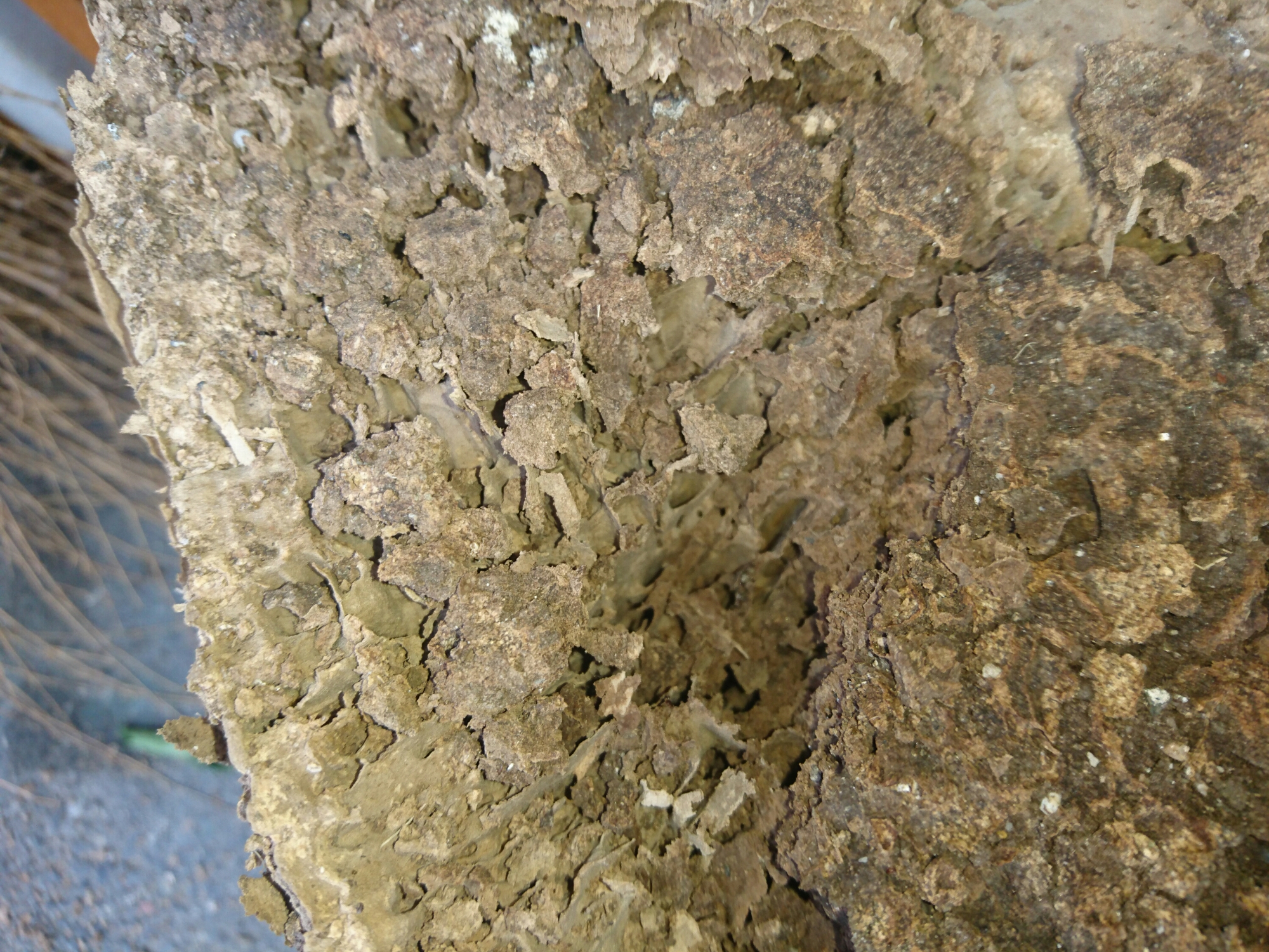 切り株の中がシロアリのコロニーになっています!とにかく無数のシロアリが出てきました!薬剤処理して処分しました。家屋床下にも被害がありましたが、外周りもしっかり調査して見ないと危険ですね!