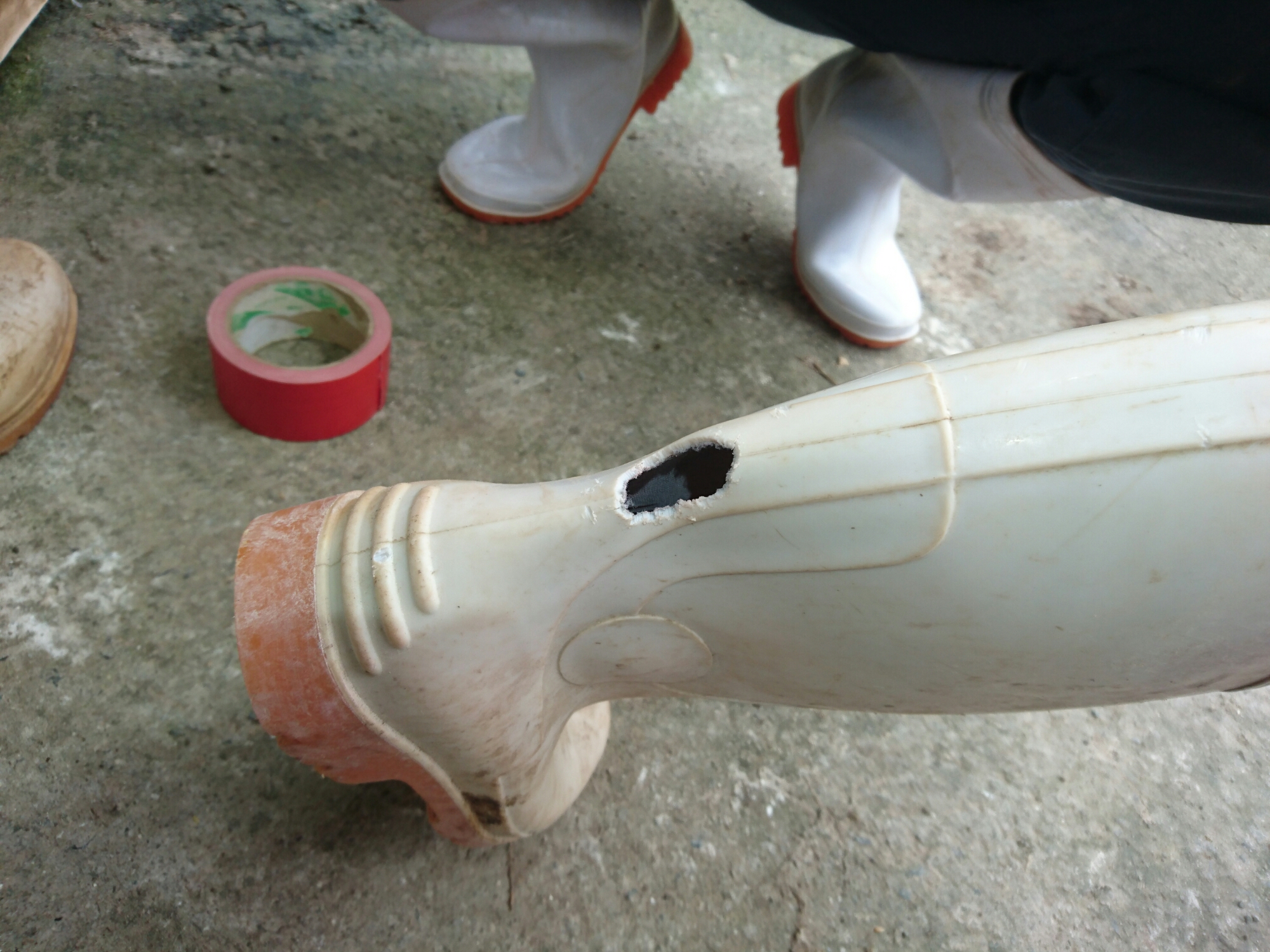 相変わらずネズミの行動には困ってます!弊社が使っている長靴がこんなことになっています!