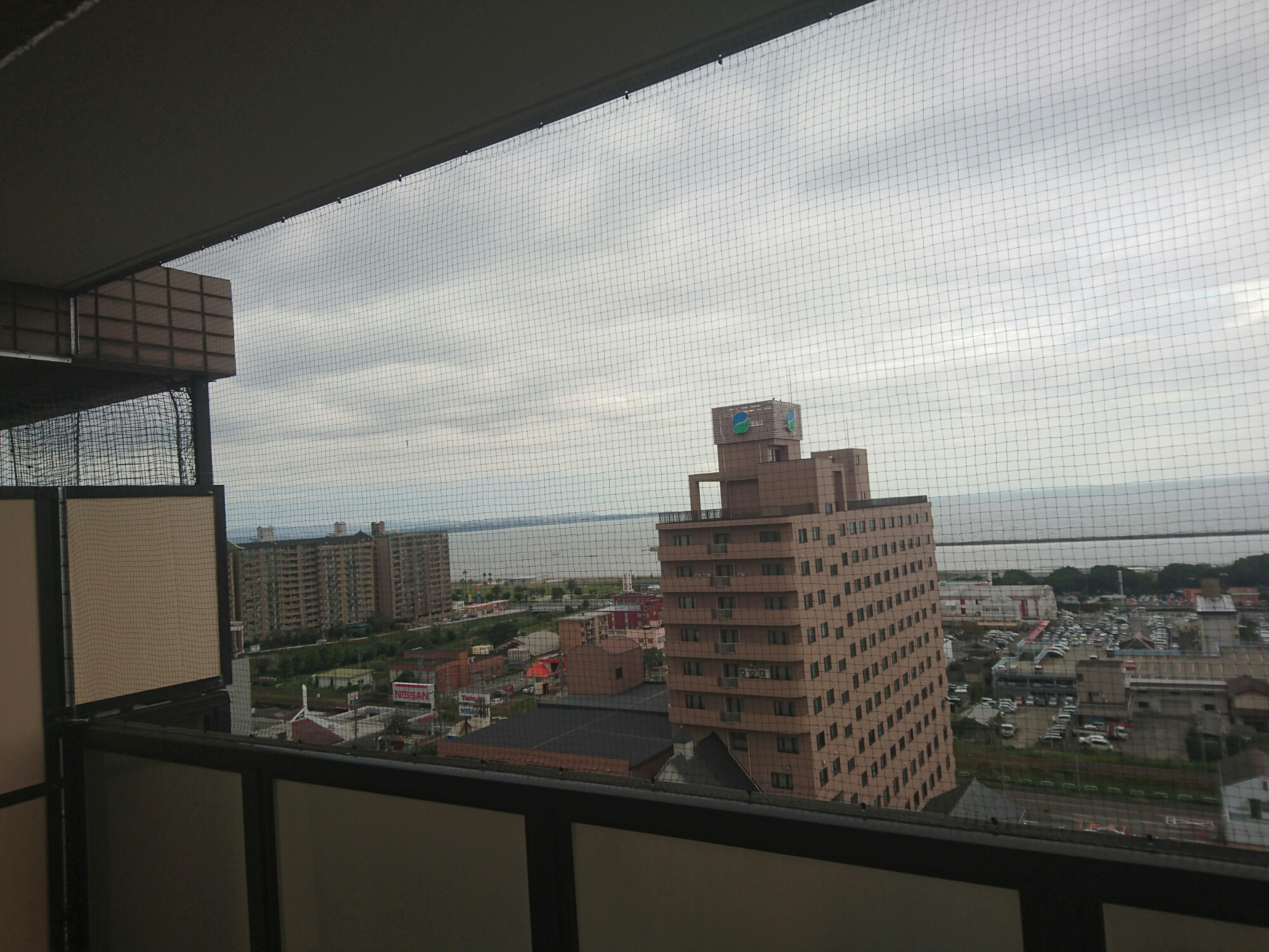 おはようございます!昨日はマンション14階のベランダ防鳥ネット設置作業でした!