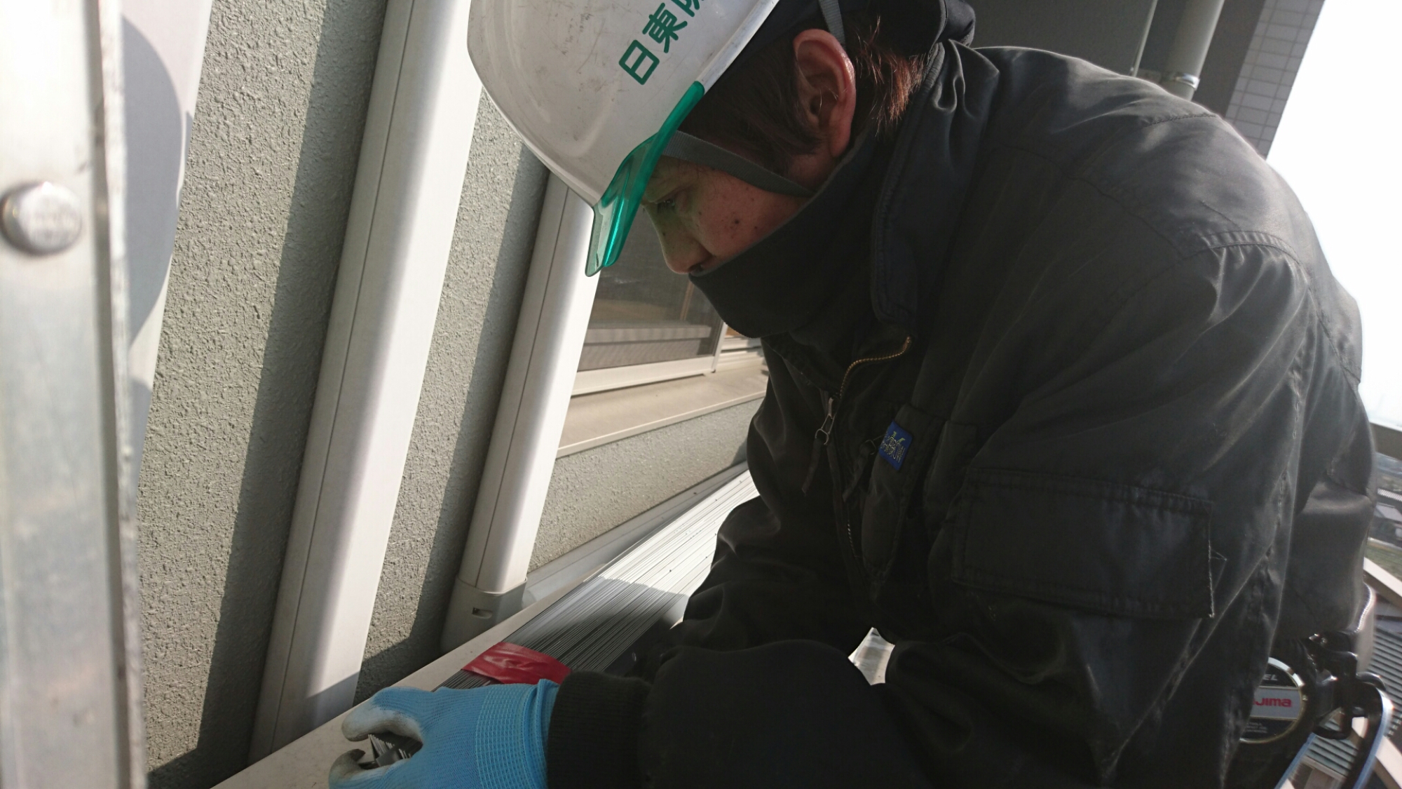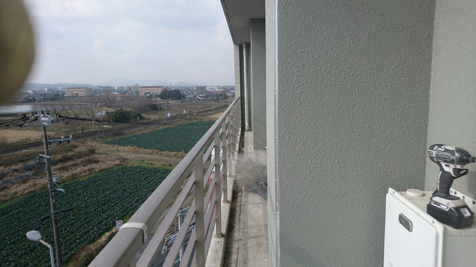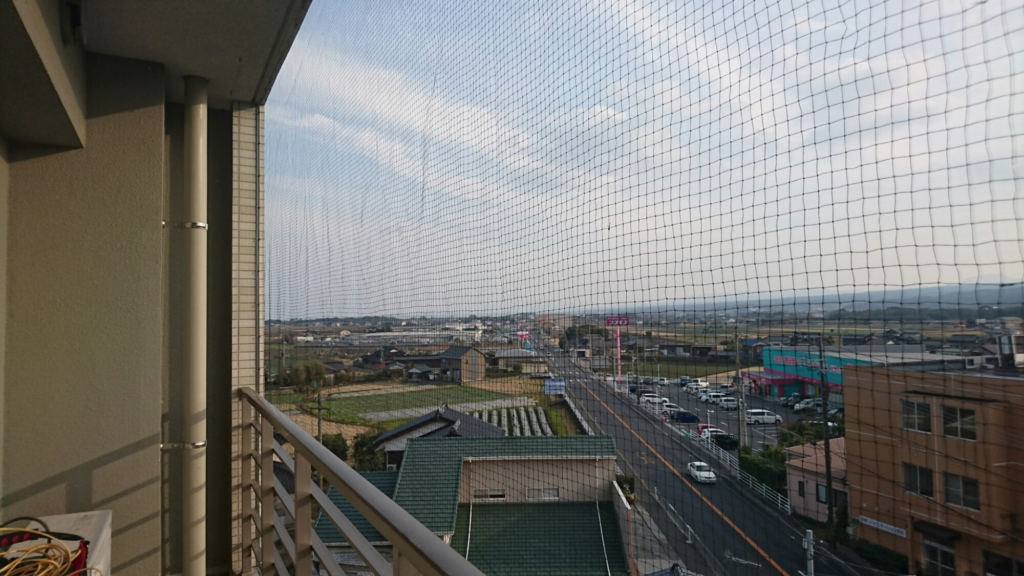 おはようございます!昨日の現場です。老人介護施設のベランダでドバト被害です!施設の屋上には、目視だけでも30羽が飛来していました。