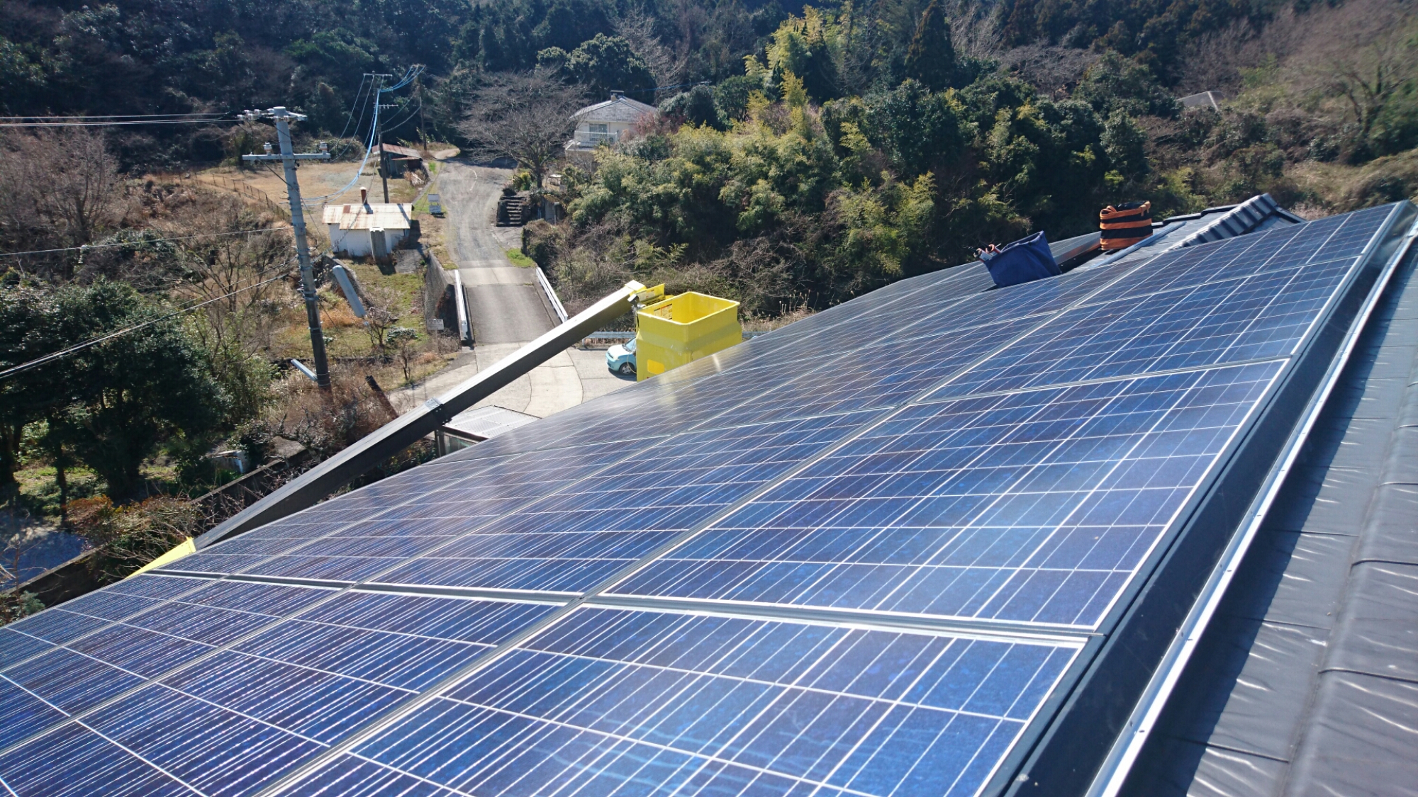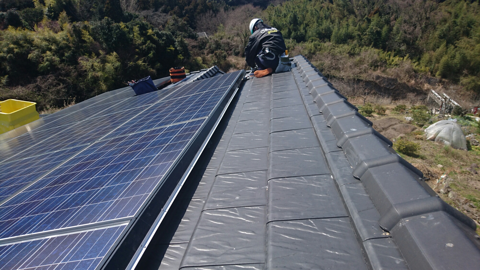 次は完了後に日出町豊岡方面に移動して、太陽光パネル防鳥対策です! スタッフと現場で合流して、またまた、安全に作業を行います。