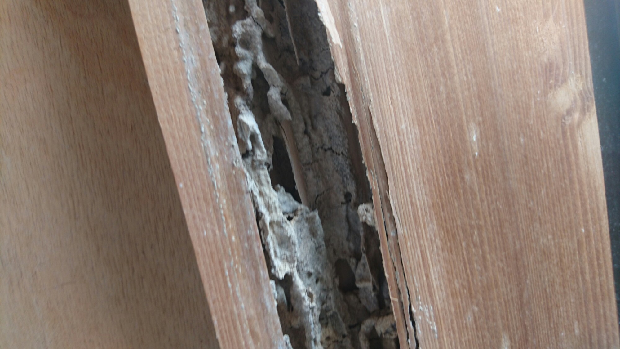 かなり、木部の中は被害がありますね!駆除後にはこの枠の補修もしてあげましょうね!