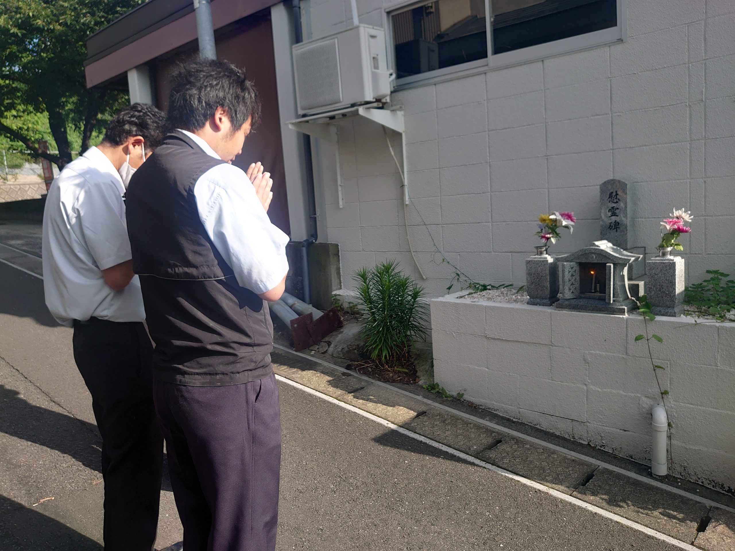 朝礼前に、動物達が成仏できるように、毎月始めの慰霊碑へ手を合わせて、7月がスタートしました。