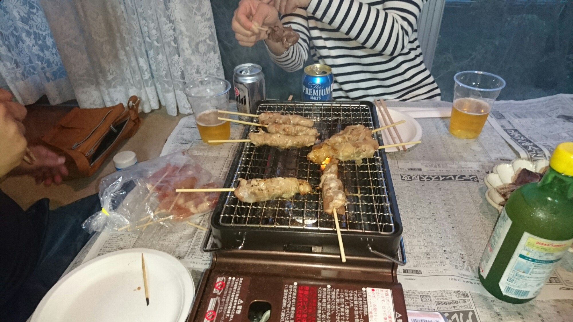 夜は焼鳥パーティーで友達家族と一緒に楽しく飲み会(笑)(^ω^)