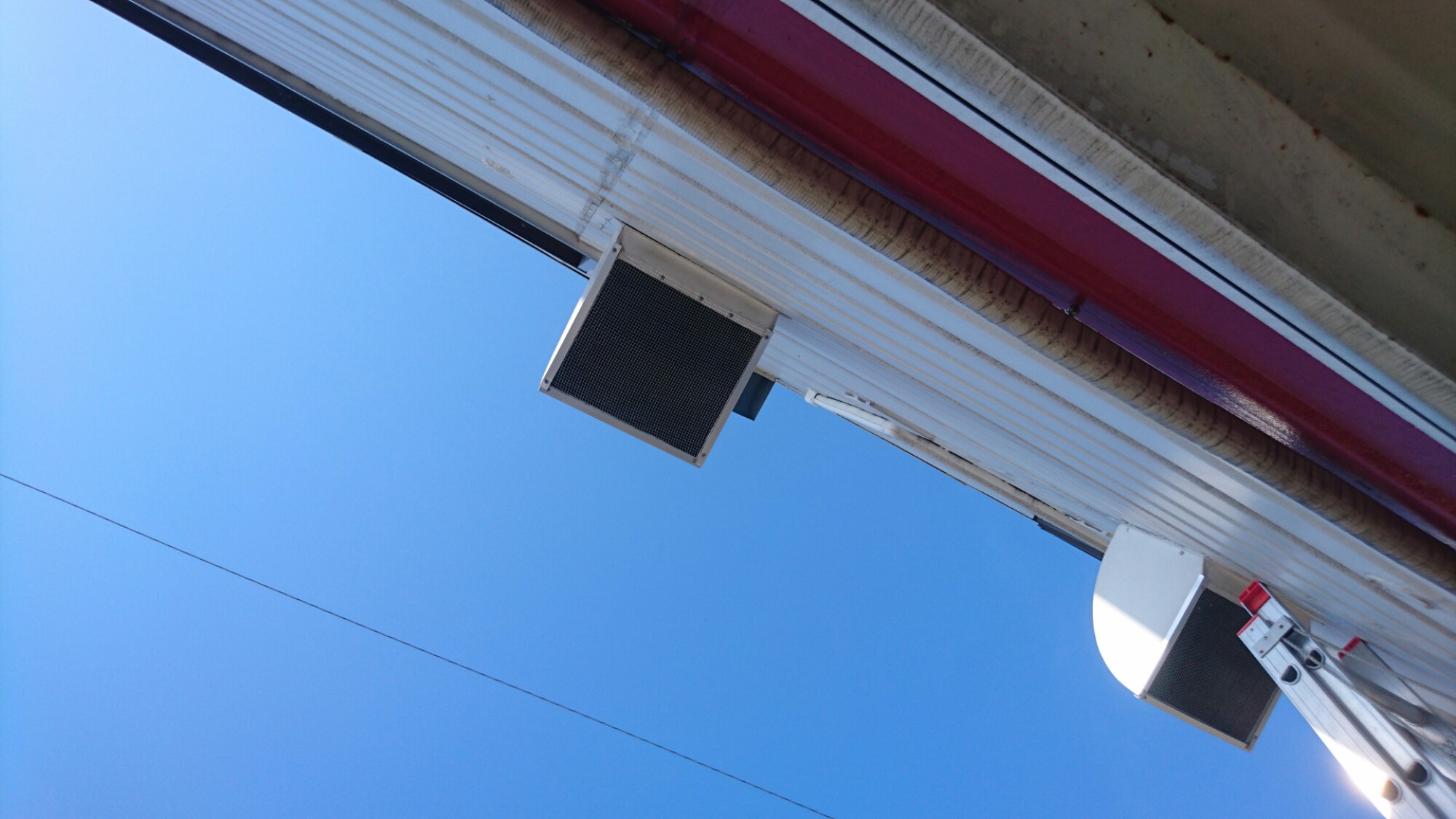 この現場は換気扇フードと軒の隙間にムクドリが侵入して困っています。