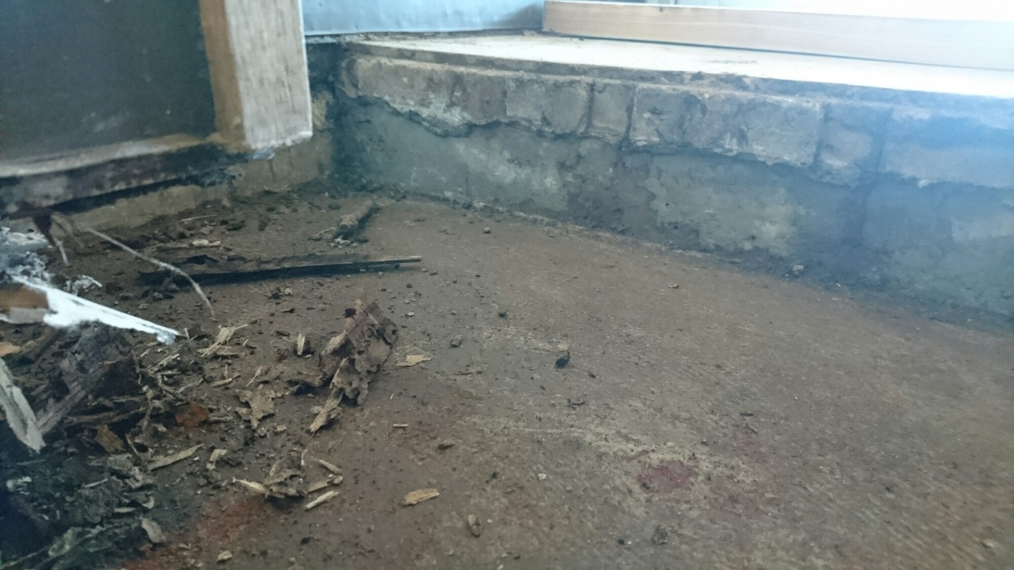 お風呂場の脱衣場です。鉄筋コンクリート6階での被害です。床下の改修工事と平行してシロアリ工事を行います!