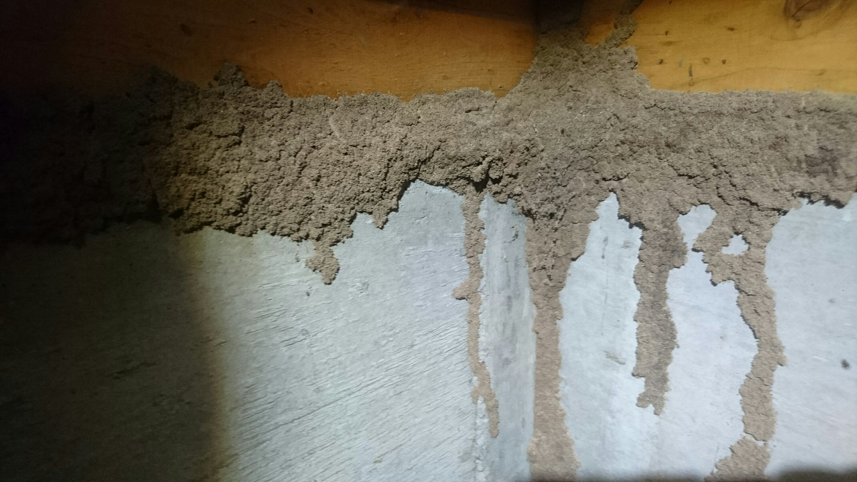 おはようございます!イエシロアリの調査現場で、物凄い活性化された状況の巣や蟻道!