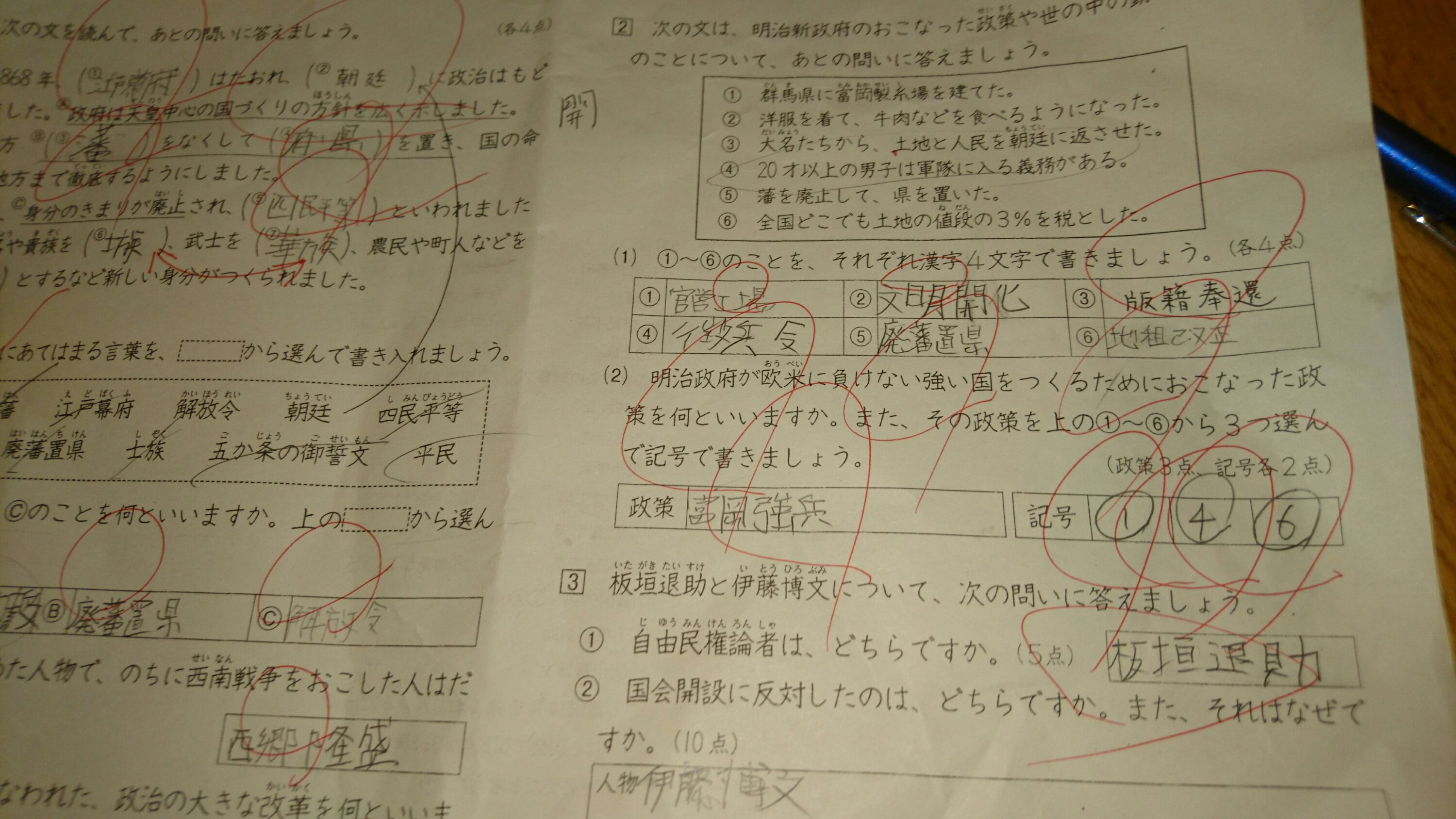 しかし、一緒に問題を読むと懐かしく忘れています。少しづつ思い出して行くと、歴史の深さや改正されていく日本が感じられますね。五箇条の御誓文や明治維新や文明開化!