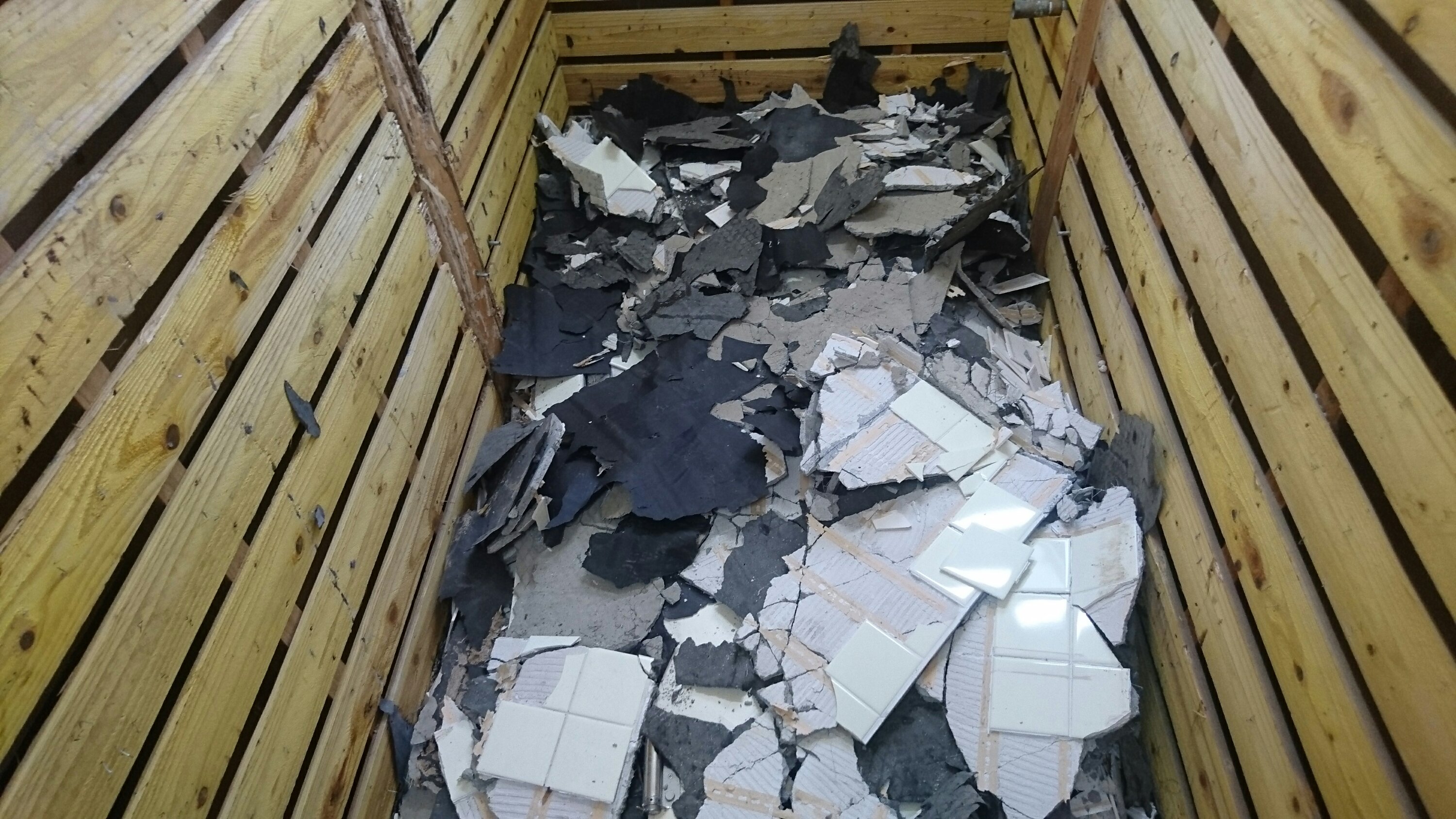 おはようございます!昨日は現場の立会いで行って見ると…。トイレのタイルを剝いで解体。やはりシロアリの被害が上がっています。