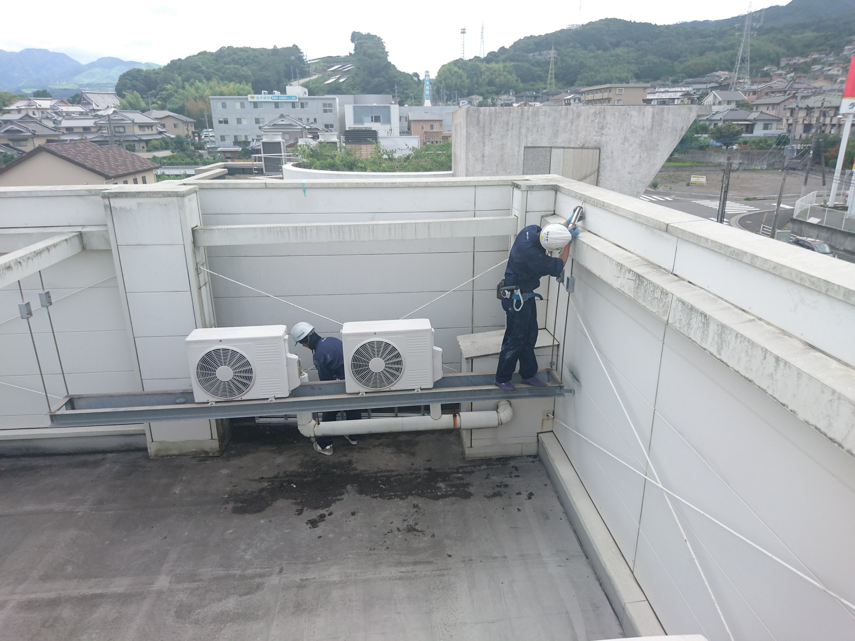 施設が広いので工事も時間が掛かります。2日間で終わらせてしまう予定ですが、雨の状況で上手く行くかどうか?一応天気は良さそう…!