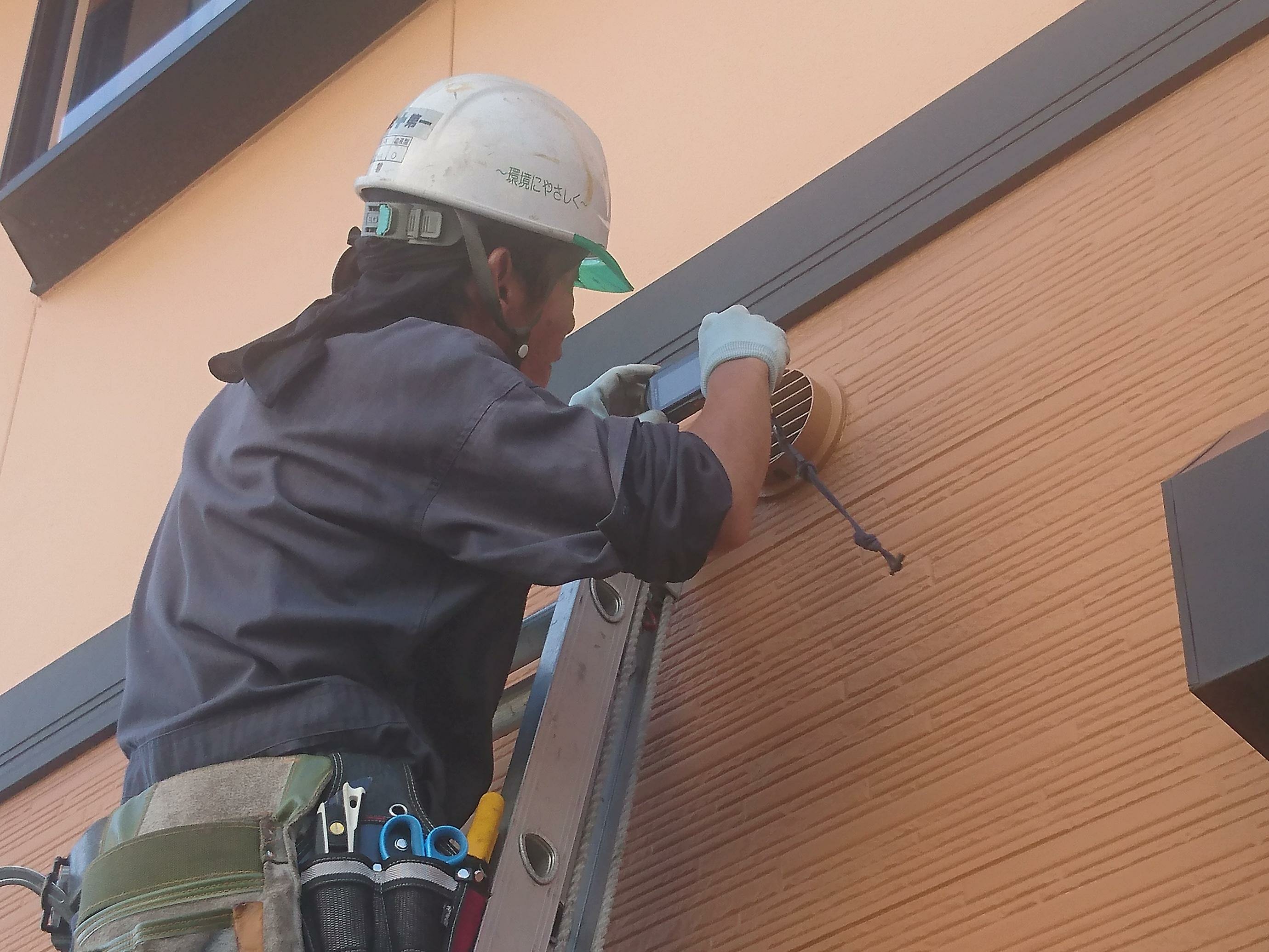 換気扇のフードの中に、コウモリが侵入しています。⤵️