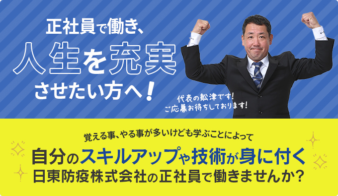 | 仕事内容 | 害虫駆除及び予防における各種作業 顧客は、飲食店や食品工場等の事業所が主です。 定期作業が主体となります。(現場の範囲は県下全域) 顧客管理もおねがいします。(社用車仕様・MT車) |