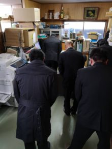 仕事納めと仕事始めは毎年恒例男性社員で朝見神社へ。