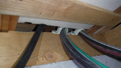 ケーブル線を追うと天井裏へ繋がる侵入口がありました。