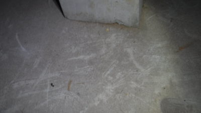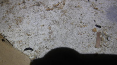 束周りのコンクリートに腹を擦ってできた跡や糞も落ちていました。