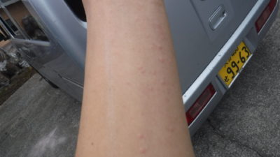 たまらず外に出て、ツナギの袖をめくると 案の定。