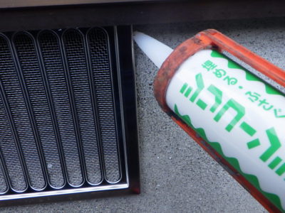 今回自分は、外回りの床下の外壁にある換気口の施工をしました