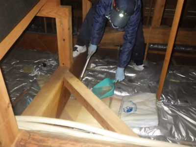 侵入口の閉塞はもちろんの事、天井裏では殺菌消毒・