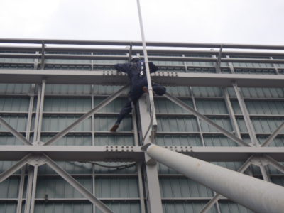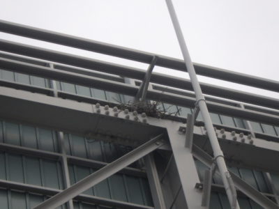 カラスの空巣撤去作業現場は高所の為、涼しい!?